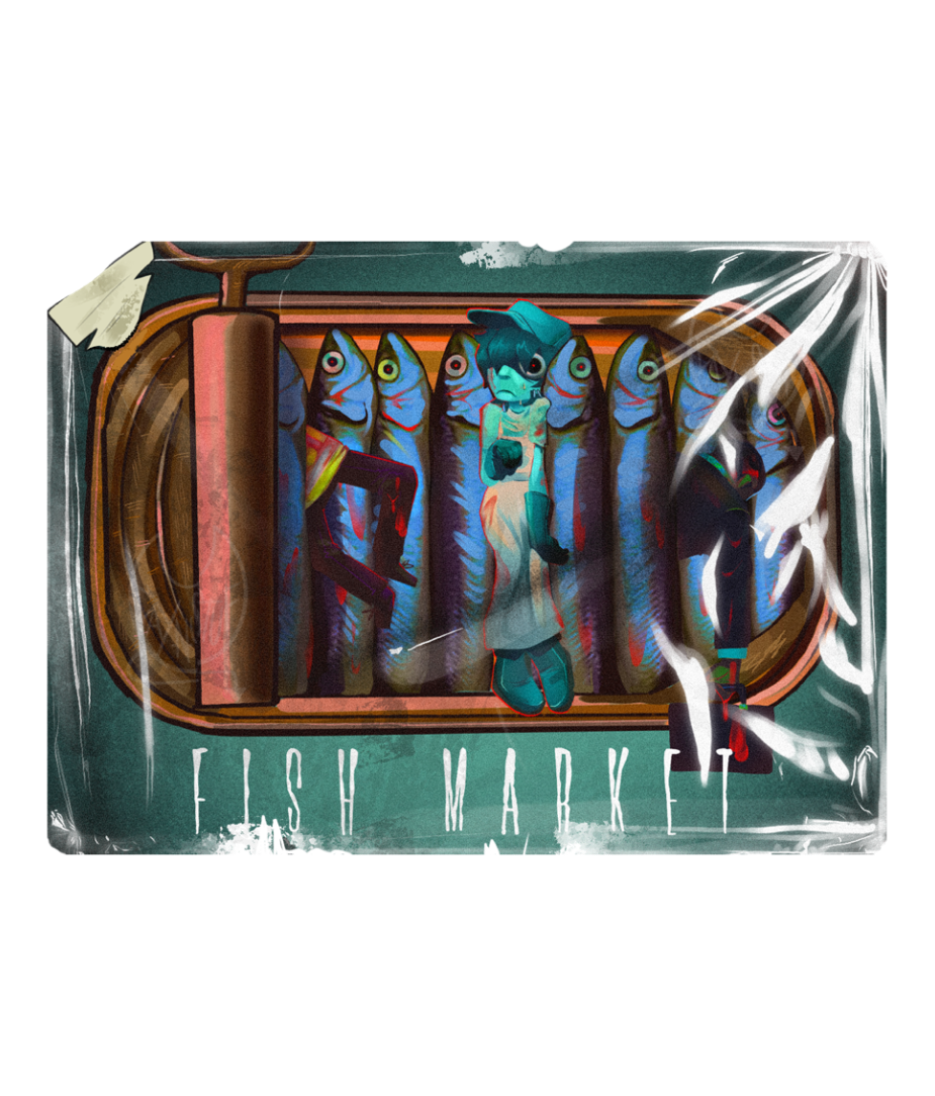 Fish Market is a visual novel about a burnt-out fish butcher trapped in the monotony of a rundown seafood market. A splitting headache triggers unsettling hallucinations as you cycle through filleting fish, serving hostile customers, and trying to stay grounded. Four endings explore different emotional responses to burnout and dissociation as the line between routine and reality begins to break.